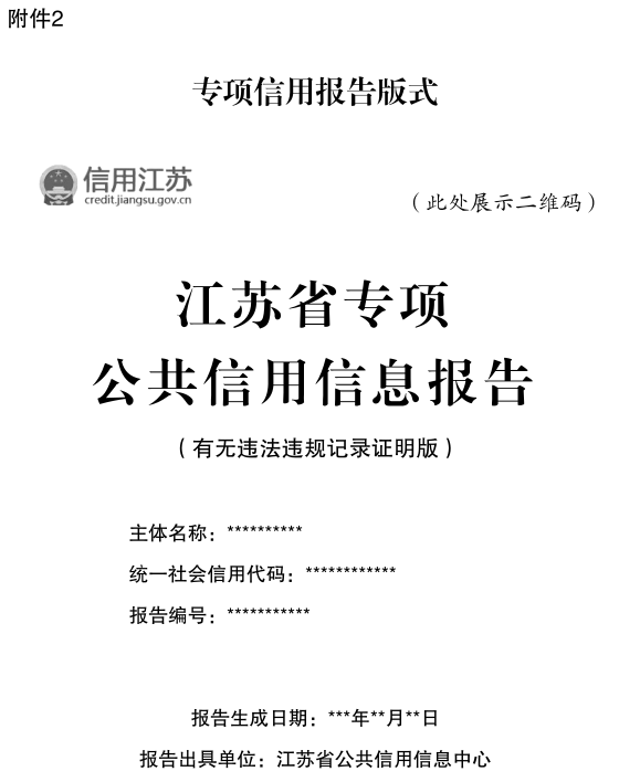 依托省公共信用信息系統共享經營主體違法違規行為信息,并依申請為經營主體開具江蘇省專項公共信用信息報告(以下簡稱專項信用報告),證明其報告期內在江蘇省行政區域內相關領域有無違法違規記錄的情況,替代經營主體赴多個部門(單位)單獨出具的有無違法違規記錄證明。